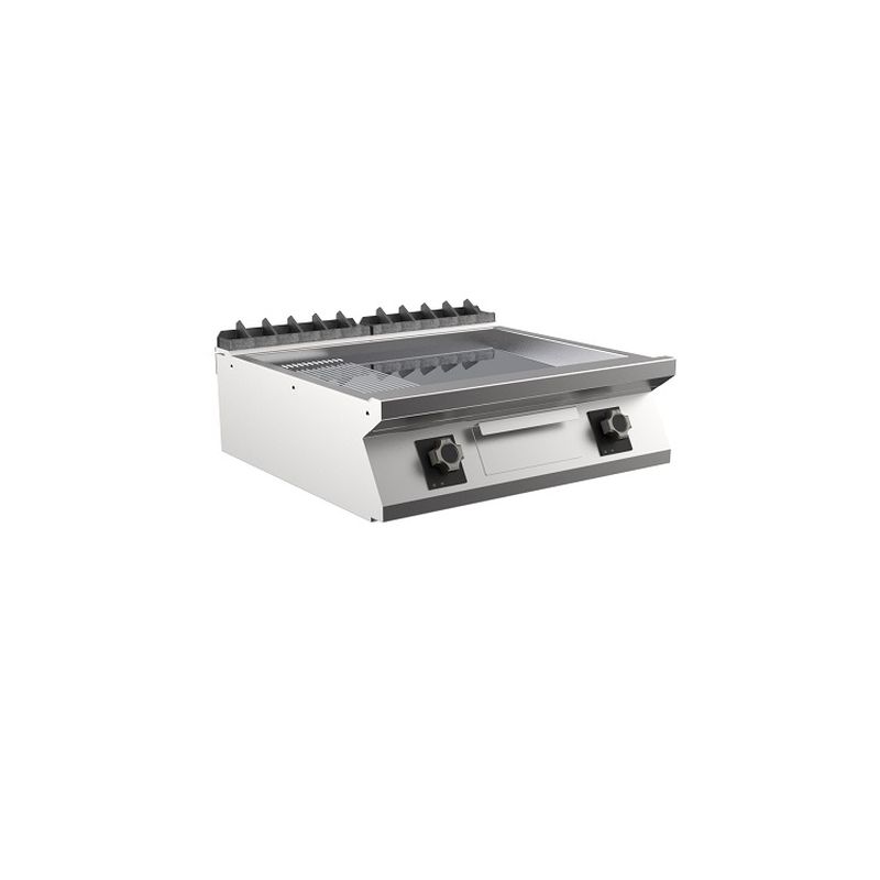 Mareno M1-700 elektrische Grillplatte mit 2/3 glatter und 1/3 gerippter Mattchromplatte, 80cm