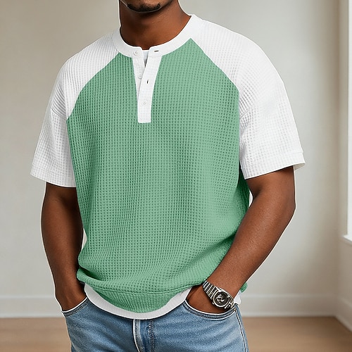 Da uomo Maglietta Waffle Maglietta Manica Corta Henley Estate Primavera Primavera Estate Tinta unica Testurizzato Moda Designer Casual Blocco di colore Lavorato a maglia Casuale Quotidiano