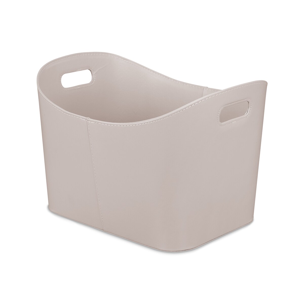 Relaxdays Holzkorb Kunstleder XL, stabiler Feuerholzkorb mit Tragegriffen, Brenn- und Kaminholz, Allzweckkorb, hellgrau