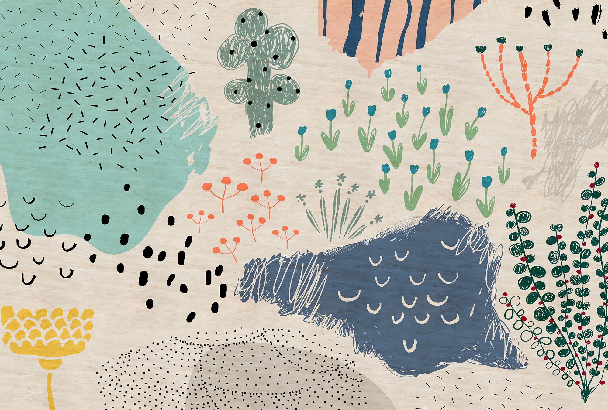 Fototapete LIVING WALLS "Walls by Patel Crayon Garden 1", beige (beige, blau), B:4m L:2,7m, Vlies, Tapeten, Vlies, Wand, Schräge