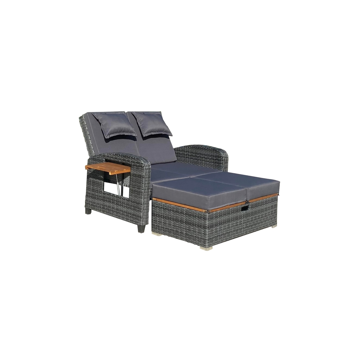 DELUKE Gartensofa OLIVIA - Akazie, Anthrazit | Gartenliege Sonnenliege