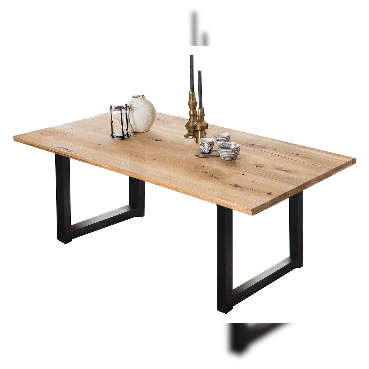 SIT Möbel Esstisch aus Wildeiche 220 cm | Platte 40 mm natur | Gestell Metall antikschwarz | B 220 x T 100 x H 75 cm | 15472-11 | Serie TABLES & CO