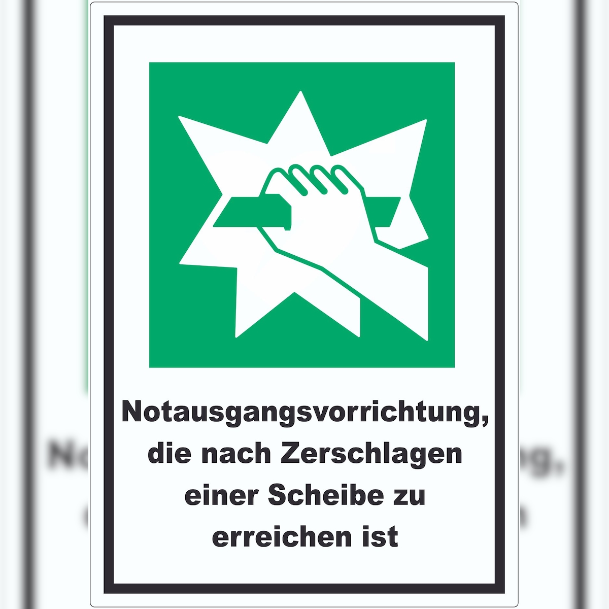 HB-Druck Notausgangsvorrichtung die nach Zerschlagen einer Scheibe zu erreichen ist Aufkleber A6 (105x148mm)