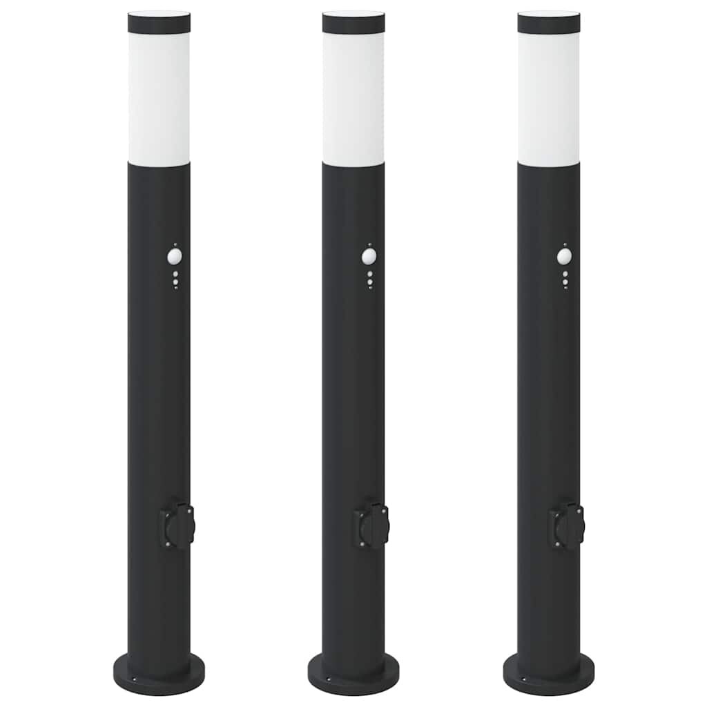 vidaXL Pollerleuchten mit Sensor&Steckdose 3 Stk. 50 cm Schwarz IP44
