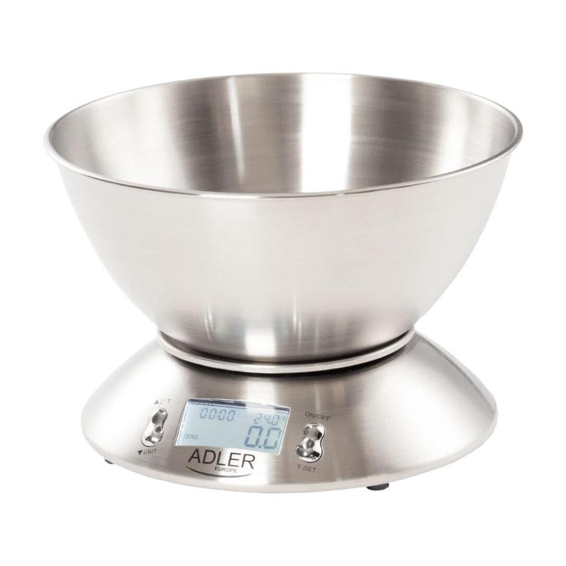 Adler Elektronische Küchenwaage mit Schüssel Silber 1,8L [Energieklasse A]