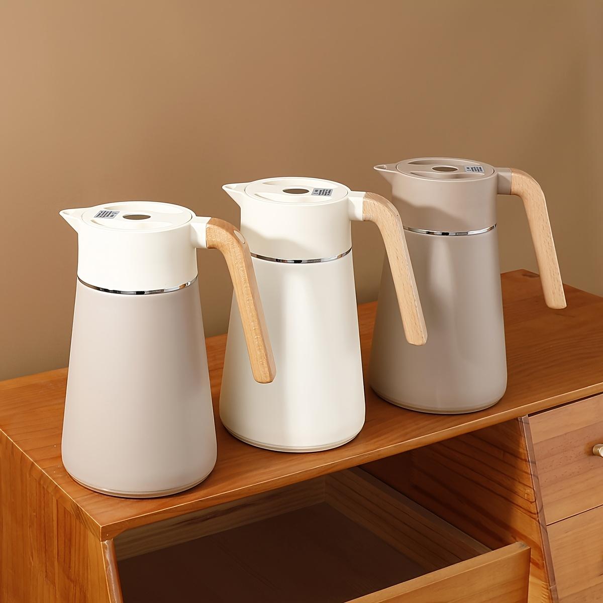 1 Stück Edelstahl Isolierte French Press mit Holzgriff, 1,5L Großes Fassungsvermögen Winter Heißwasser, 304 Edelstahl, Büro Kaffeebereiter