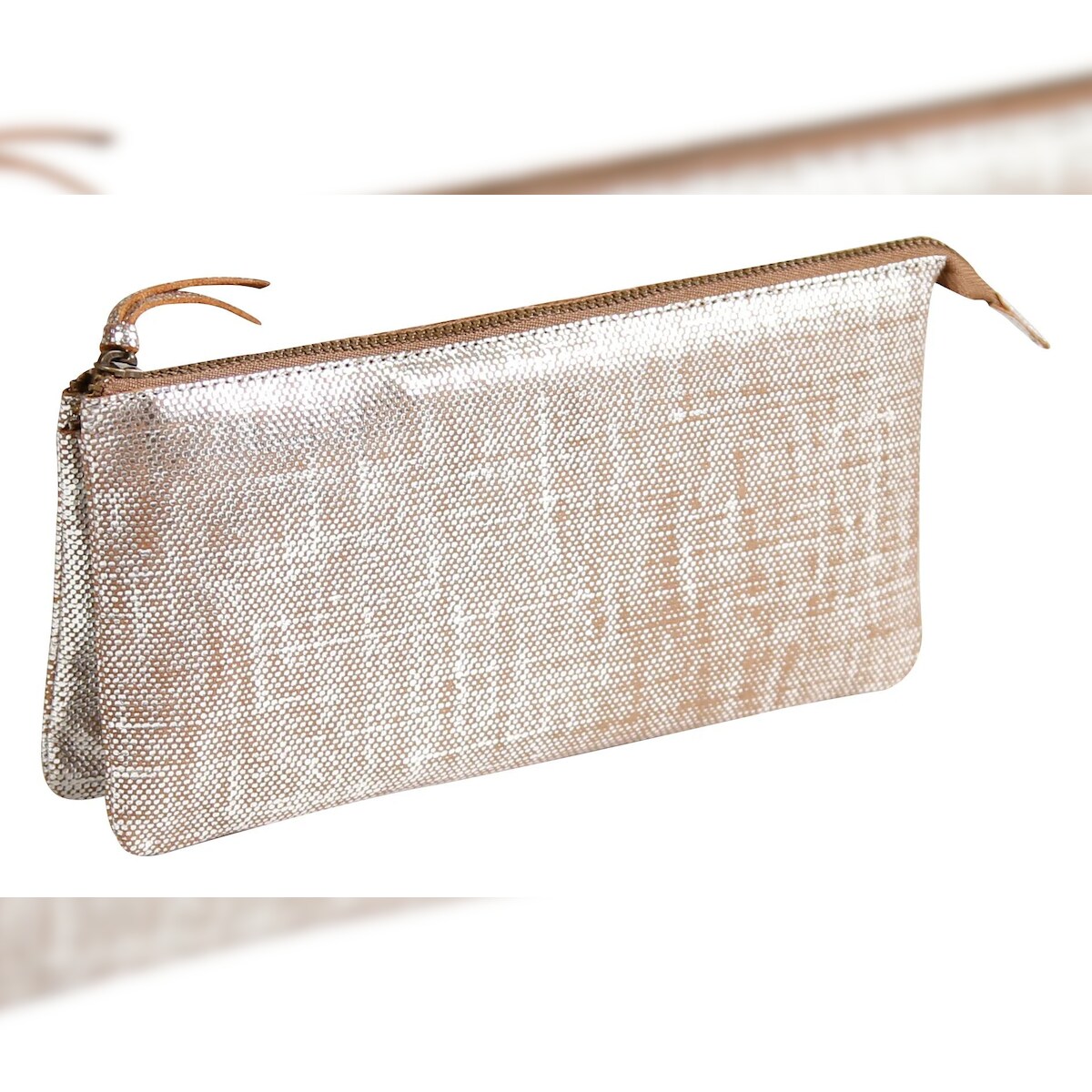 Clairefontaine 4x KLEO-PATHRA Großes Schlampermäppchen Leder 2 Fächer 22x11cm silber - 410050C