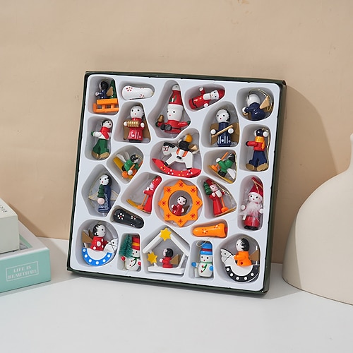 Mini set di ciondoli natalizi di Babbo Natale, scatola cieca da 24 giorni, ornamenti per alberi in legno, pupazzi dipinti a mano, decorazioni da appendere, scatola regalo per le feste in casa,