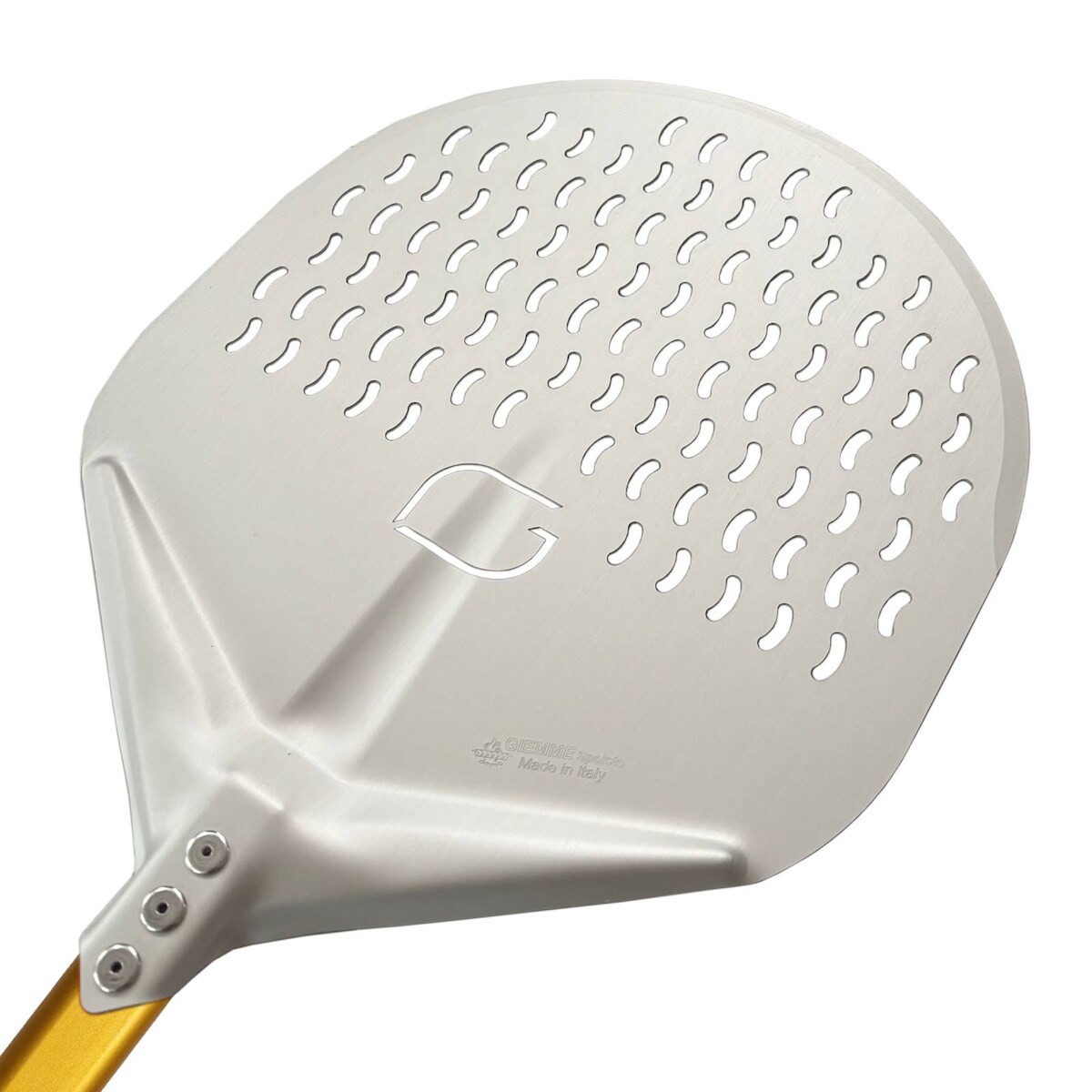 Giemme Spoleto - Professionelle runde Pizzaschaufel mit Lochplatte aus eloxiertem Aluminium, 33 cm, Griff 30 cm