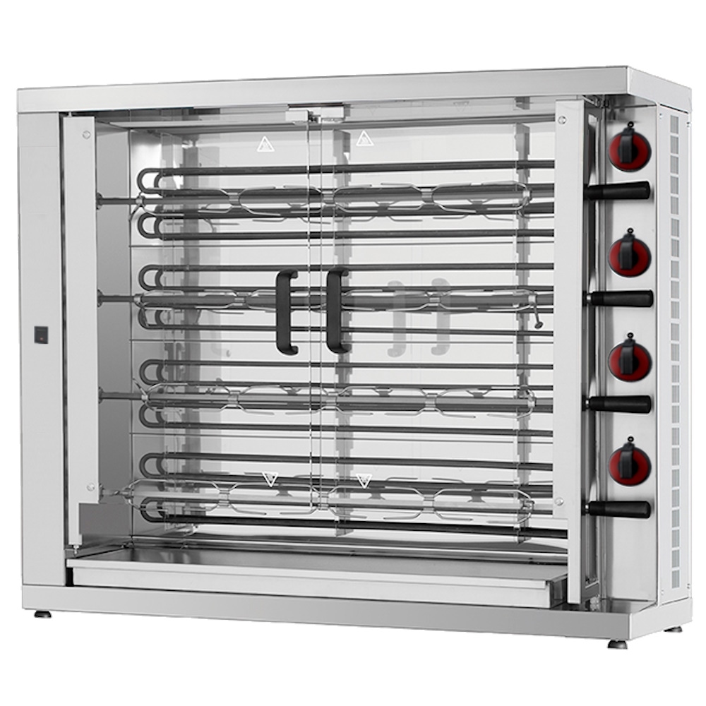 Elektrischer hähnchengrill mit licht. 4 schwerter = 20/24 hühner - 1100x450x970 mm - 16800 W 400/3V - 53203L42 Eurast