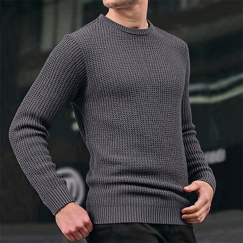 Per uomo Maglione Maglione a maglia A Coste Maglia Top Regolari Lavorato a maglia Semplice Girocollo Moda Essenziale Vacanza Abbigliamento quotidiano Abbigliamento Autunno Inverno Nero Blu marino M L