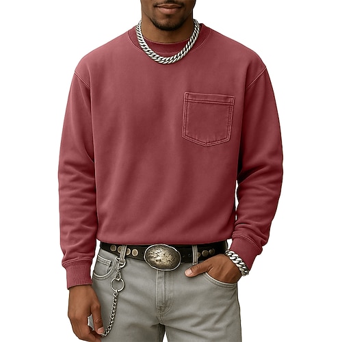 Per uomo Maglia Maglione Blu Rosso bordeaux Giallo Verde militare Blu marino Girocollo Semplice Patchwork Tasca Sport Outdoor Casuale Quotidiano Vintage Streetwear Abbigliamento Sportivo Primavera