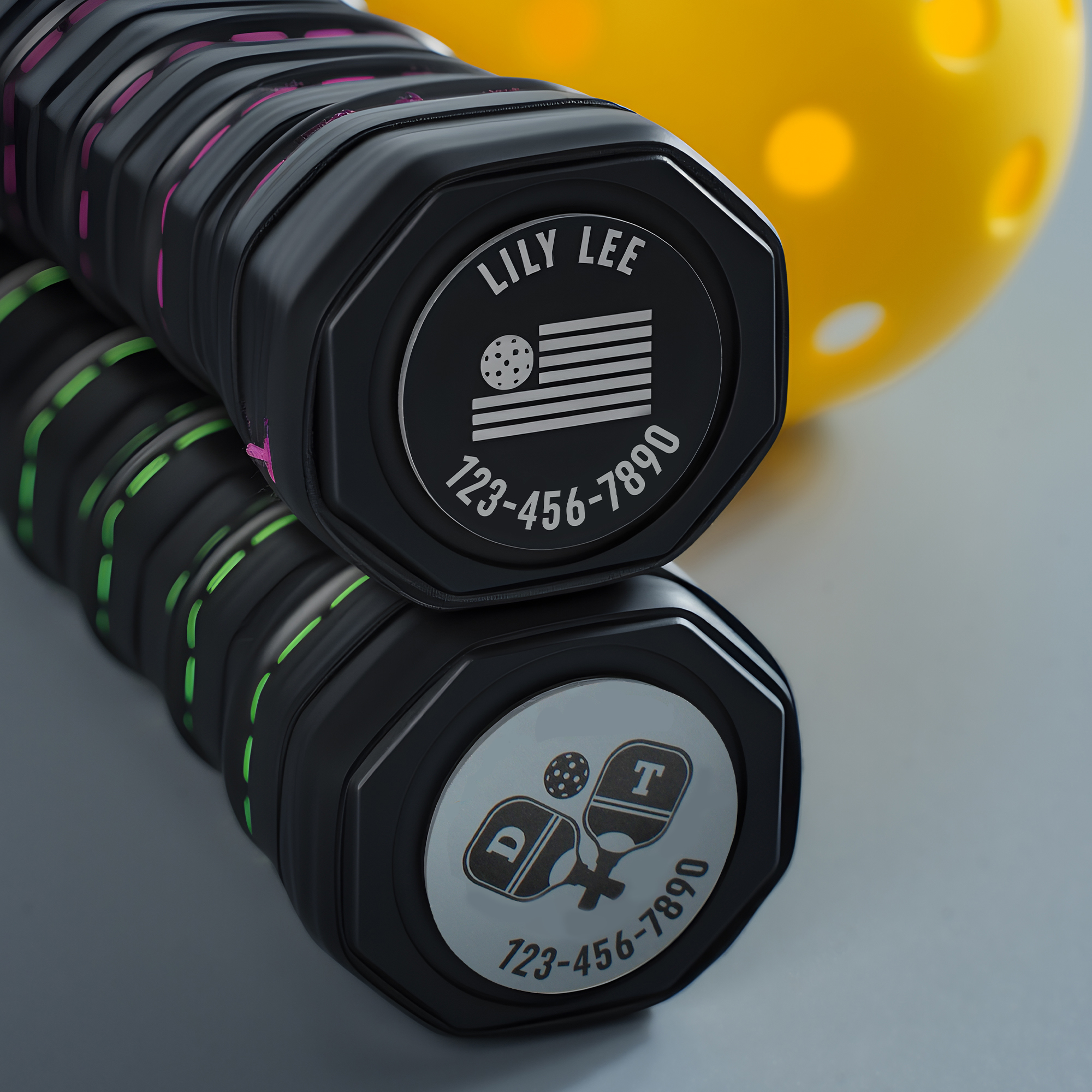 Etiquette de fond de pagaie en métal personnalisée avec nom et numéro Accessoires d'entraînement quotidien Cadeau d'équipe pour les amoureux du pickleball