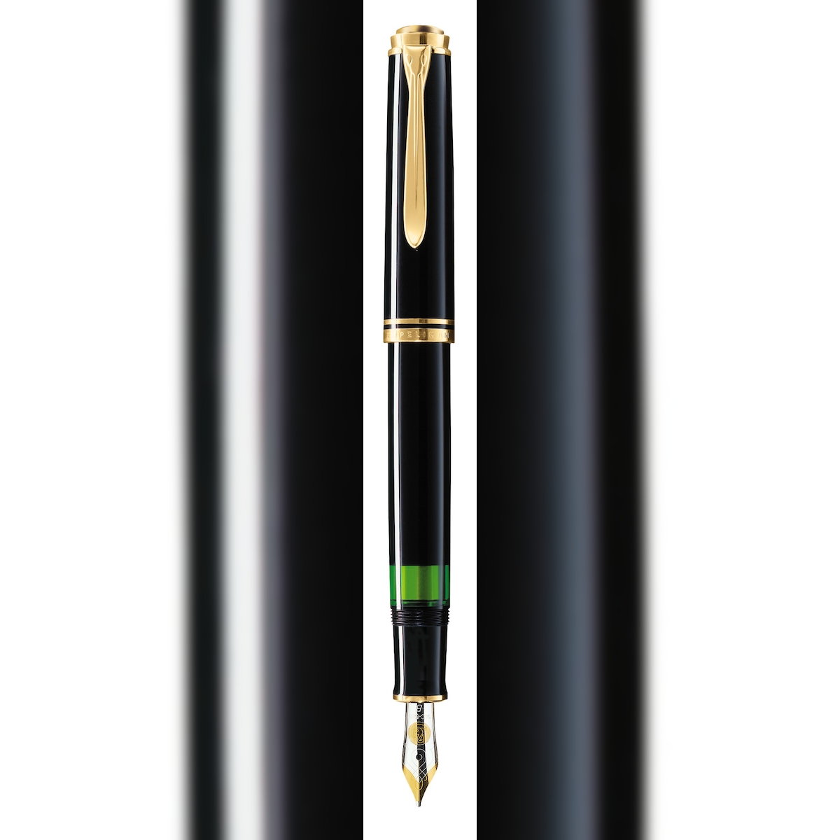 Pelikan M600, Schwarz, Gold, Integriertes Befüllsystem, Diamond, Harz, Gold, Kursiv nib, Gold/Rhodium