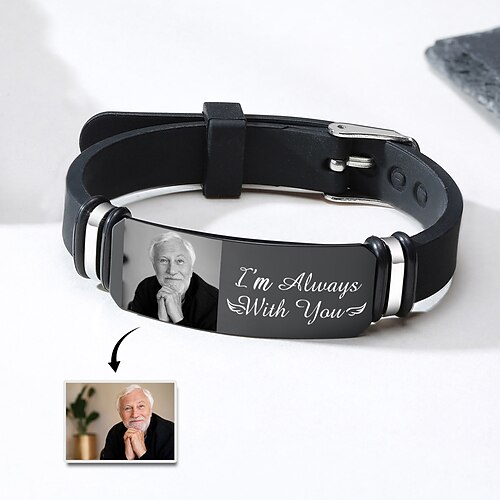 Bracciale commemorativo con foto personalizzata, bracciale da uomo con incisione personalizzata, regali di condoglianze per la perdita di una persona cara, sono sempre con te