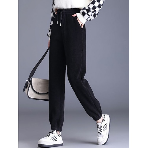 Per donna Joggers Pantaloni in Pile Pantaloni Pantaloni in velluto a coste Moda Streetwear Essenziale Lunghezza intera Vita Alta Semplice Coulisse Tasca Elastico in vita Caldo Morbido Confortevole