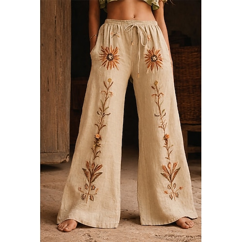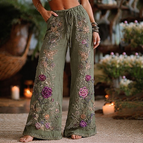 Per donna Gamba larga Pantaloni Pantaloni Palazzo Moda Boho Lunghezza intera Vita Alta Fiore Coulisse Elastico in vita Stampato Traspirabilità Confortevole Streetwear Abbigliamento quotidiano Uscire