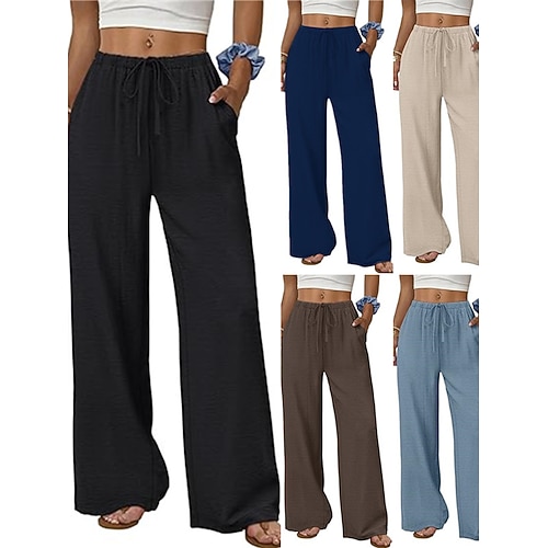 Per donna Pantaloni Pantaloni Estivi Pantaloni da Spiaggia Vacanza Moda Casual Quotidiano Lunghezza intera Vita Alta Semplice Coulisse Gamba larga Comodità Alta elasticità Abbigliamento casual alla