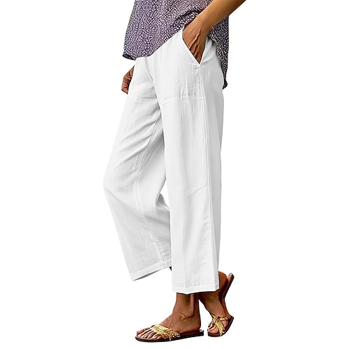 Pantaloni in cotone e lino da donna Pantaloni da spiaggia Pantaloni casual Pantaloni per vacanza quotidiani lunghezza intera vita alta tinta unita con coulisse vita elastica gamba dritta comfort