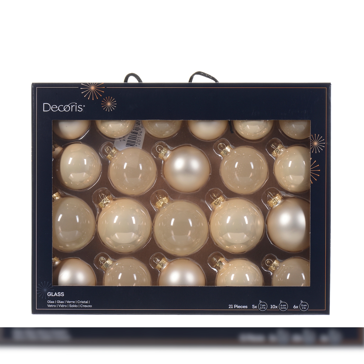 19 Weihnachtskugeln Glas 5-6cm mit Spitze Set Glitzer Motiv Christbaumkugeln Weihnachtsbaumkugeln Christbaumspitze Christbaumschmuck Deko Champagner