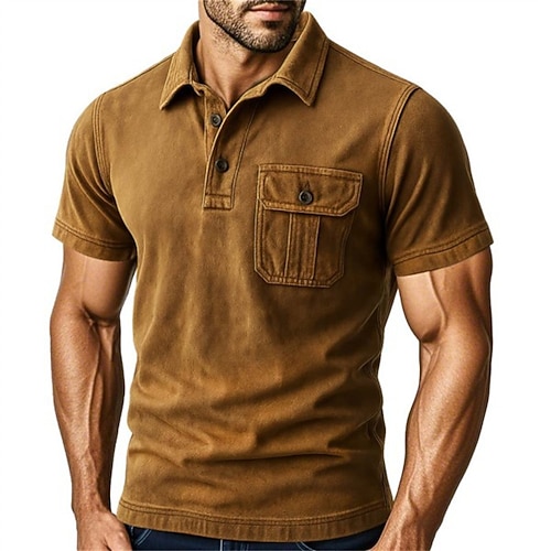 Per uomo Polo Maglia da golf Streetwear Casuale Bavero Manica Corta Essenziale Moderno Semplice Tasca Bottoni Estate Primavera Vestibilità regolare Marrone Polo