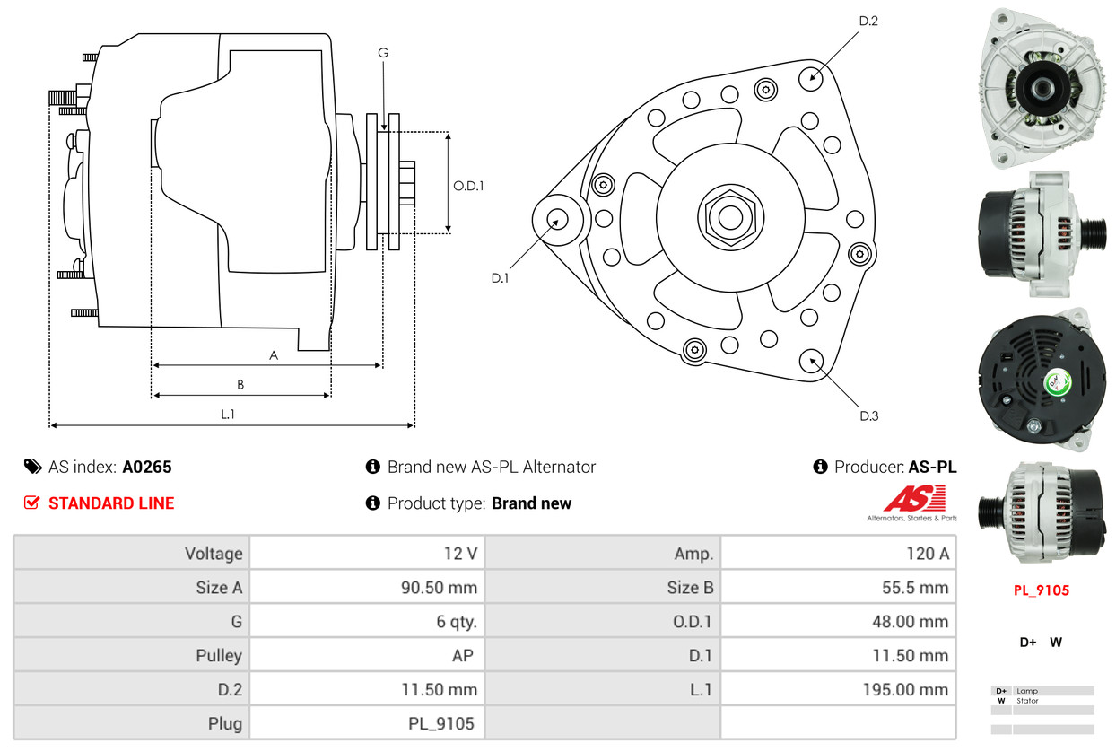 AS-PL Generator 12V 120A für DAF MERCEDES-BENZ SSANGYONG CHEVROLET 0081548202 0091548202 1611543602 A0265