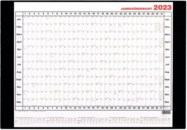 GÜSS Schreibunterlage PVC, 2023, Jahresübersicht, 63 x 42 cm, Tagesfeld: 1,5 x 2,5 cm