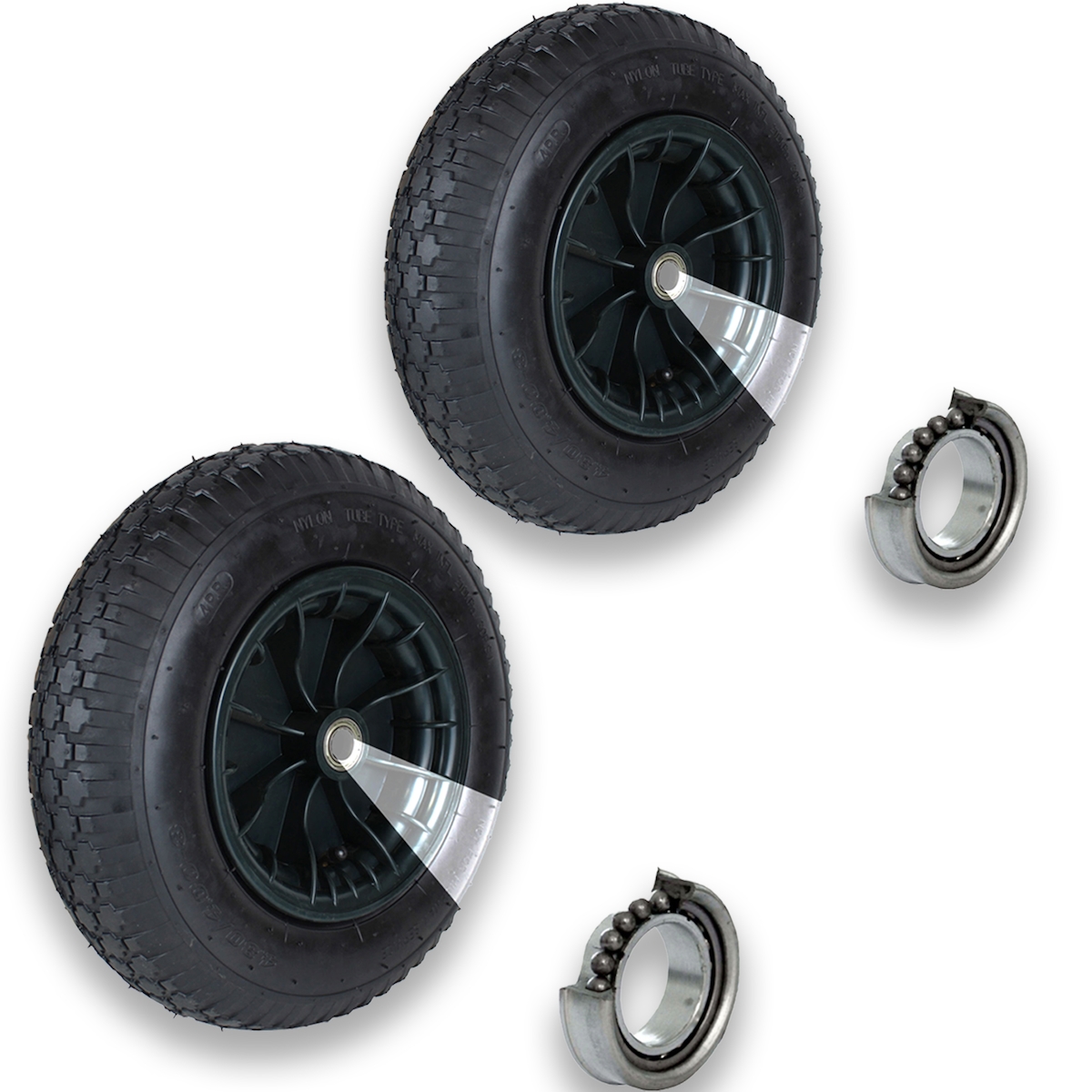 Baumarktplus 2x Schubkarrenrad 4.80 / 4.00-8 4PR Luftbereifung Ersatzrad mit Achse