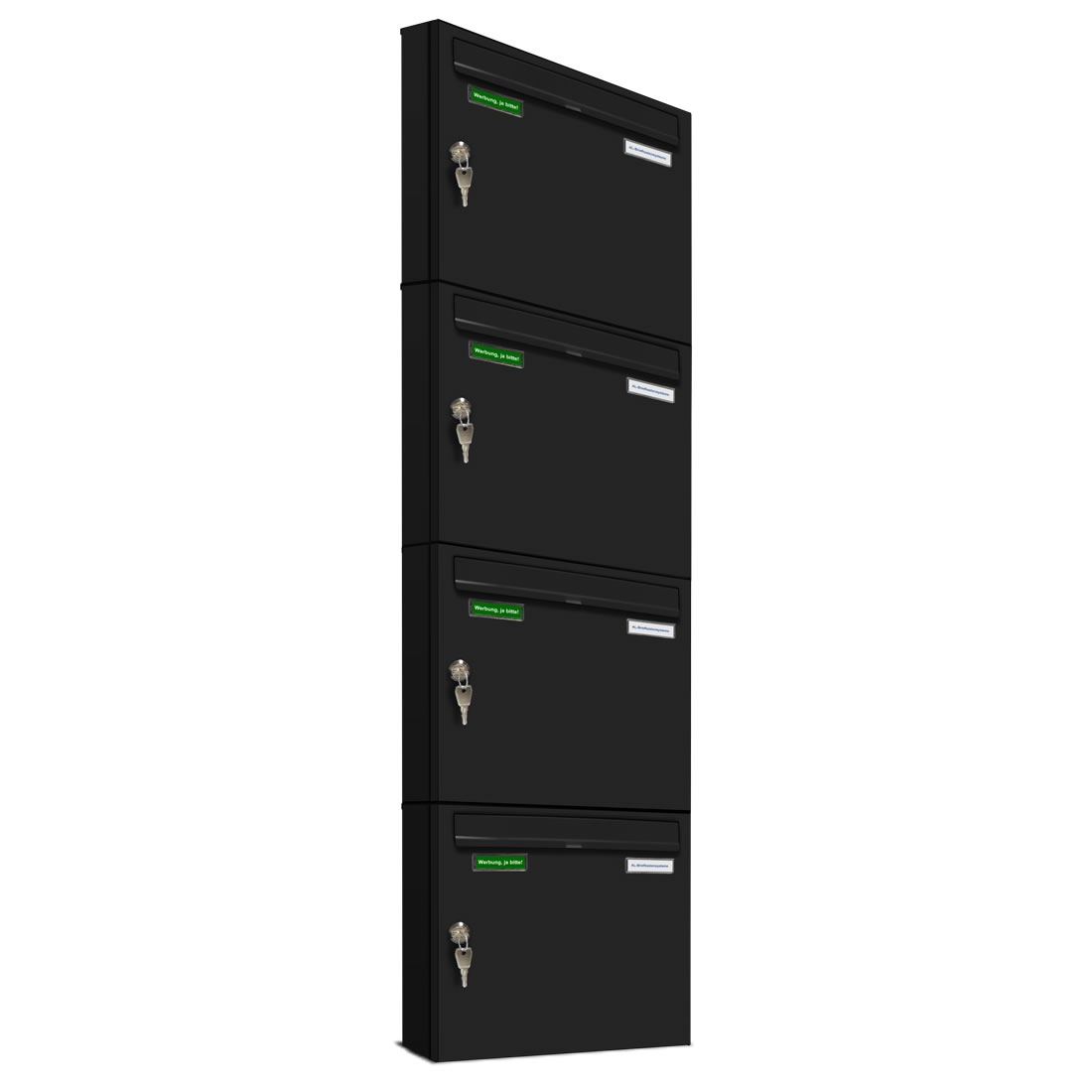 AL Briefkastensysteme 4 x Basic Wand Briefkasten RAL Farbe 9006 Weiss Aluminium für Post A4, wetterfest, Artikelnummer: 431P4EA4P9006