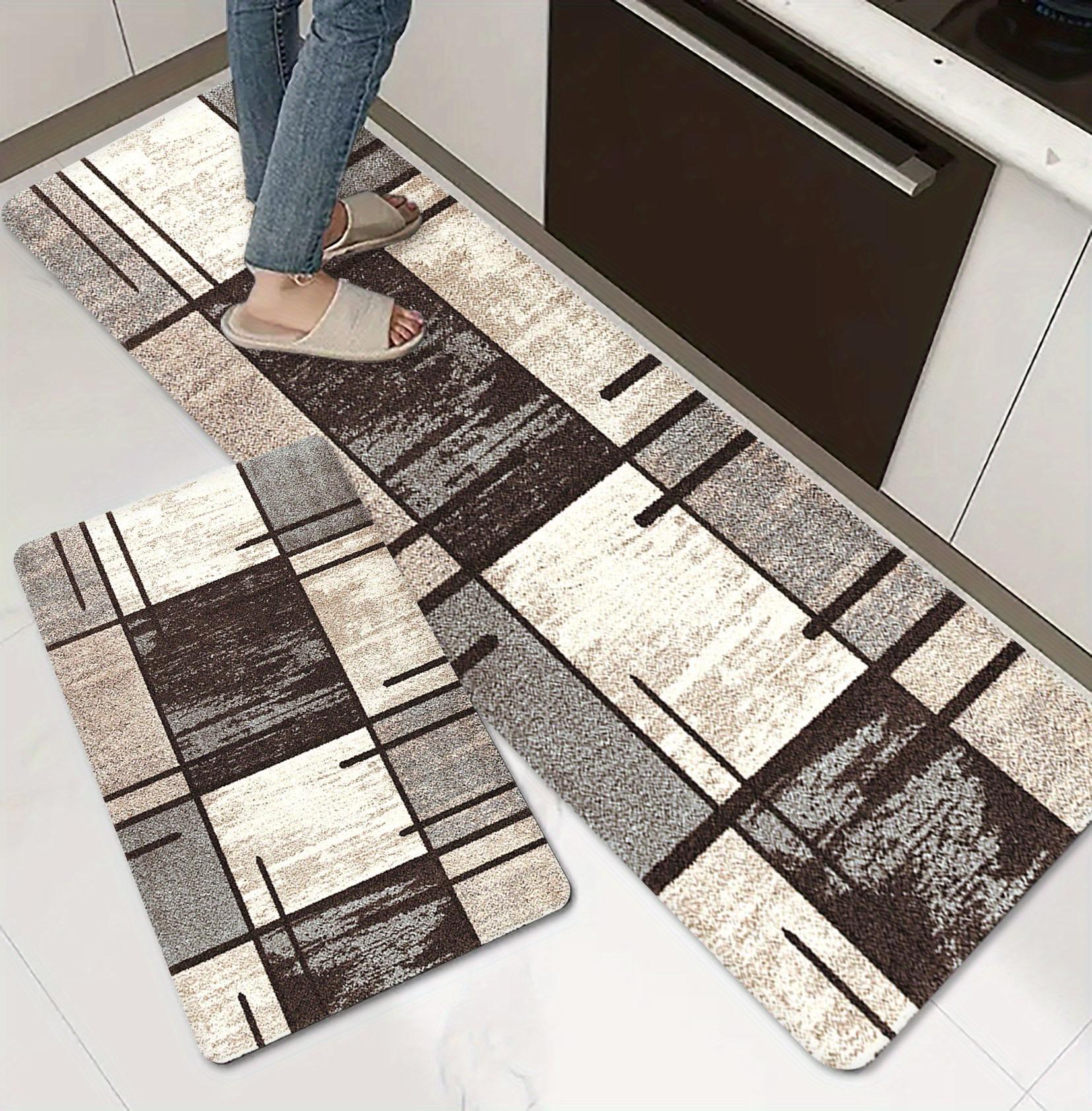 Geometric Abstract Kitchen Mat Soft Thickened Kitchen Floor Mat Waterproof Non-slip Oil-proof Floor Mat Runner Rug light blue
