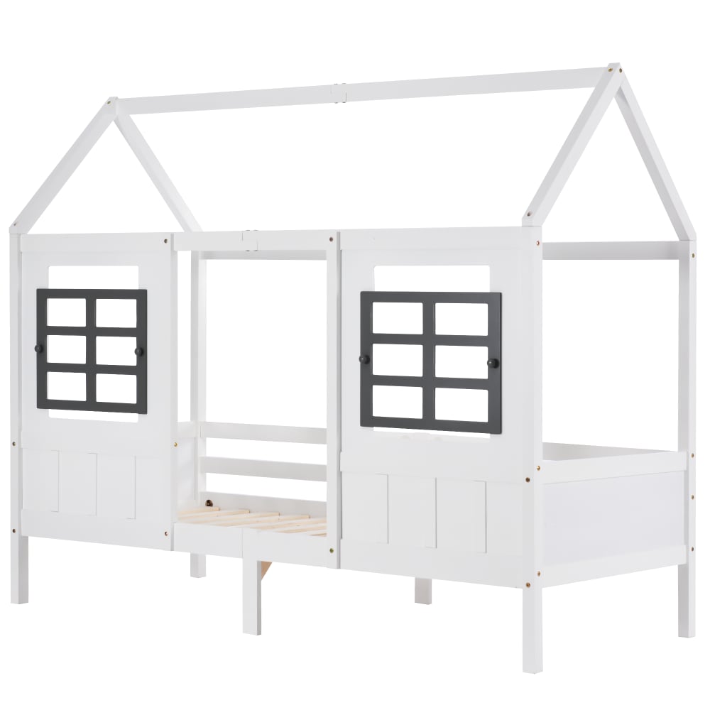 Letto per bambini in legno bianco 90×200cm con rete a doghe