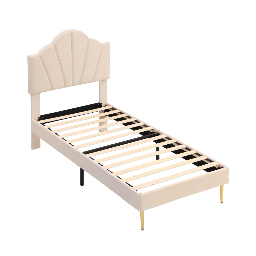Letto beige con rete a doghe 90x190cm