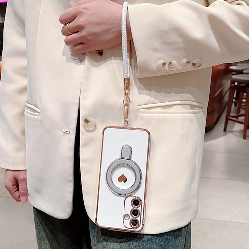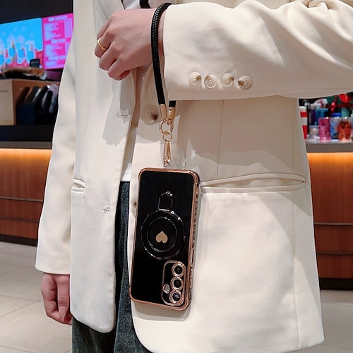 telefono Custodia Per Samsung Galaxy S21 FE A16 A25 A15 A14 A34 A24 A53 A33 A13 Copertura Posteriore Con Cinturino da Polso Resistente agli urti Retrò TPU Placcatura