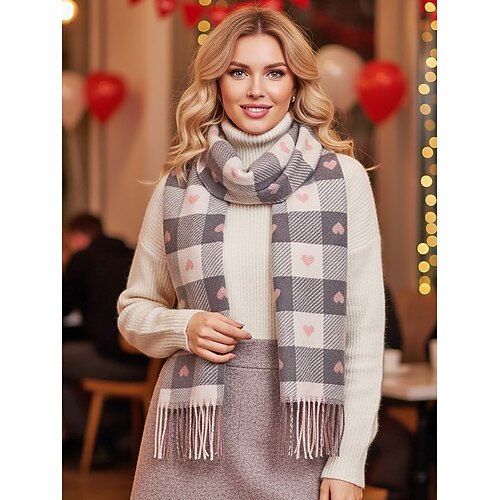 sciarpa da donna in poliestere con motivo a cuore, vari colori, ideale come regalo di San Valentino e da indossare tutti i giorni