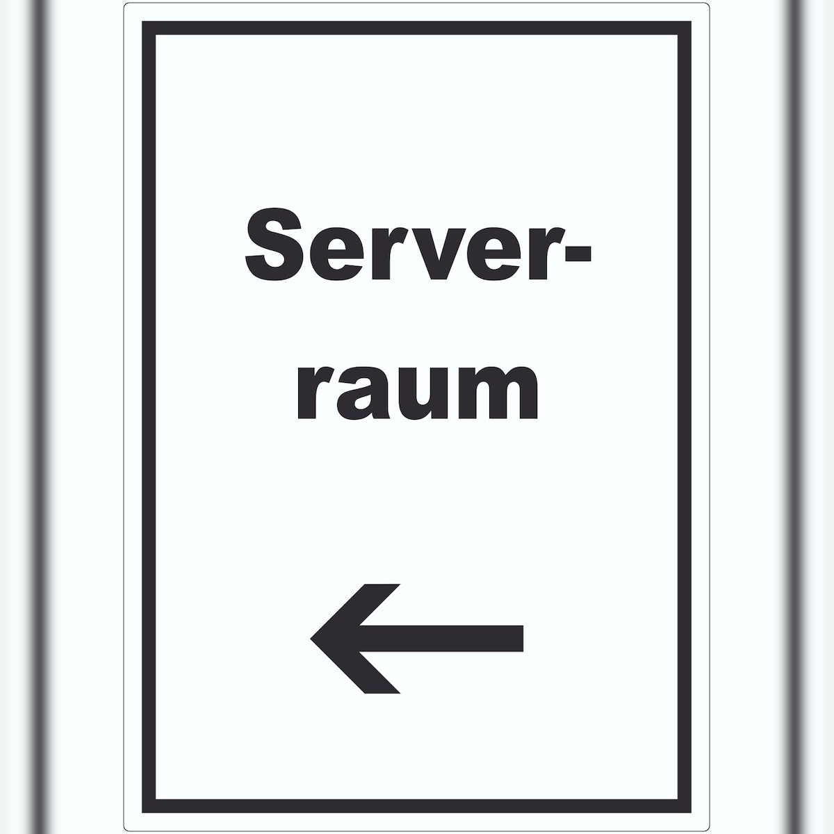 HB-Druck Serverraum Schild mit Text und Richtungspfeil links Computer IT PC hochkant A3 Rückseite selbstklebend