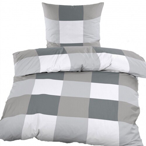 KH-Haushaltshandel Biber Winter Bettwäsche 135 x 200 + 80x80 cm, 100% Baumwolle, grau weiß, kariert