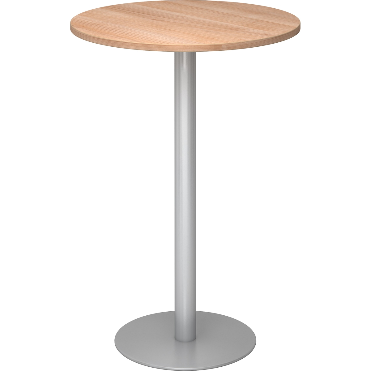 bümö Stehtisch Büro, Bistrotisch rund 80 x 80 cm - Bartisch Buche, Stehtisch Holz-Platte, Säule aus Metall in silber, Buffettisch, Säulentisch,