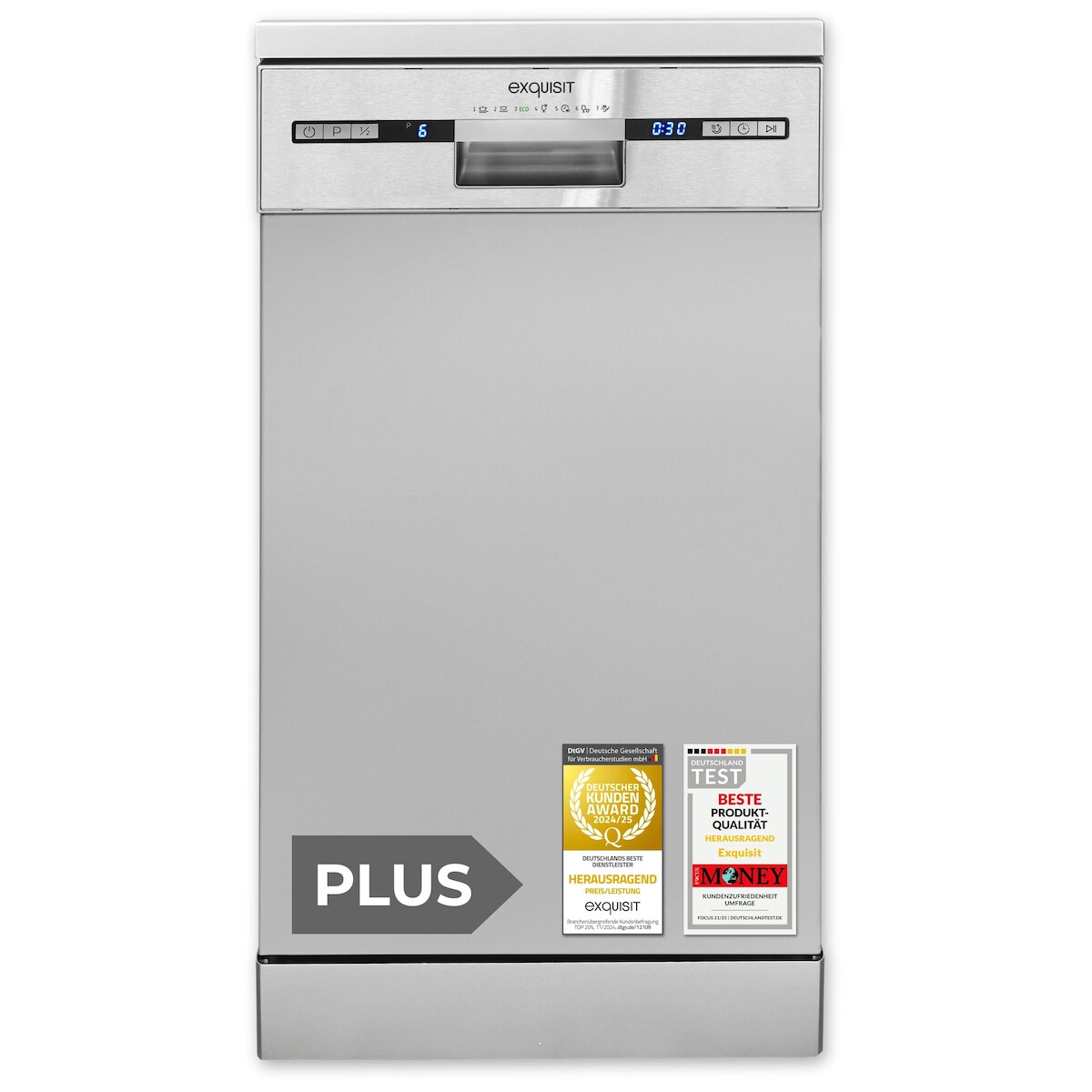 Exquisit PLUS Geschirrspüler 45 cm, Unterbaufähig, 9 Maßgedecke, 9 Liter, ECO-Programm, Startzeitvorwahl, GSP59309-030E silber