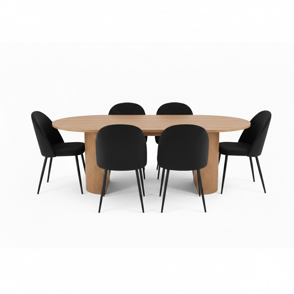 Ebuy24 Kyoto Essgruppe Esstisch 100x210cm Natur, 6 Stühle Velours schwarz.
