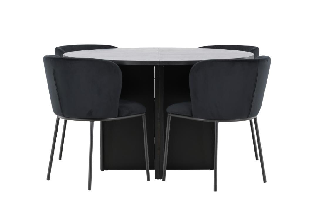Ebuy24 Strada Essgruppe Ausziehtisch Ø120cm, 170cm und 4 Stühle schwarz.