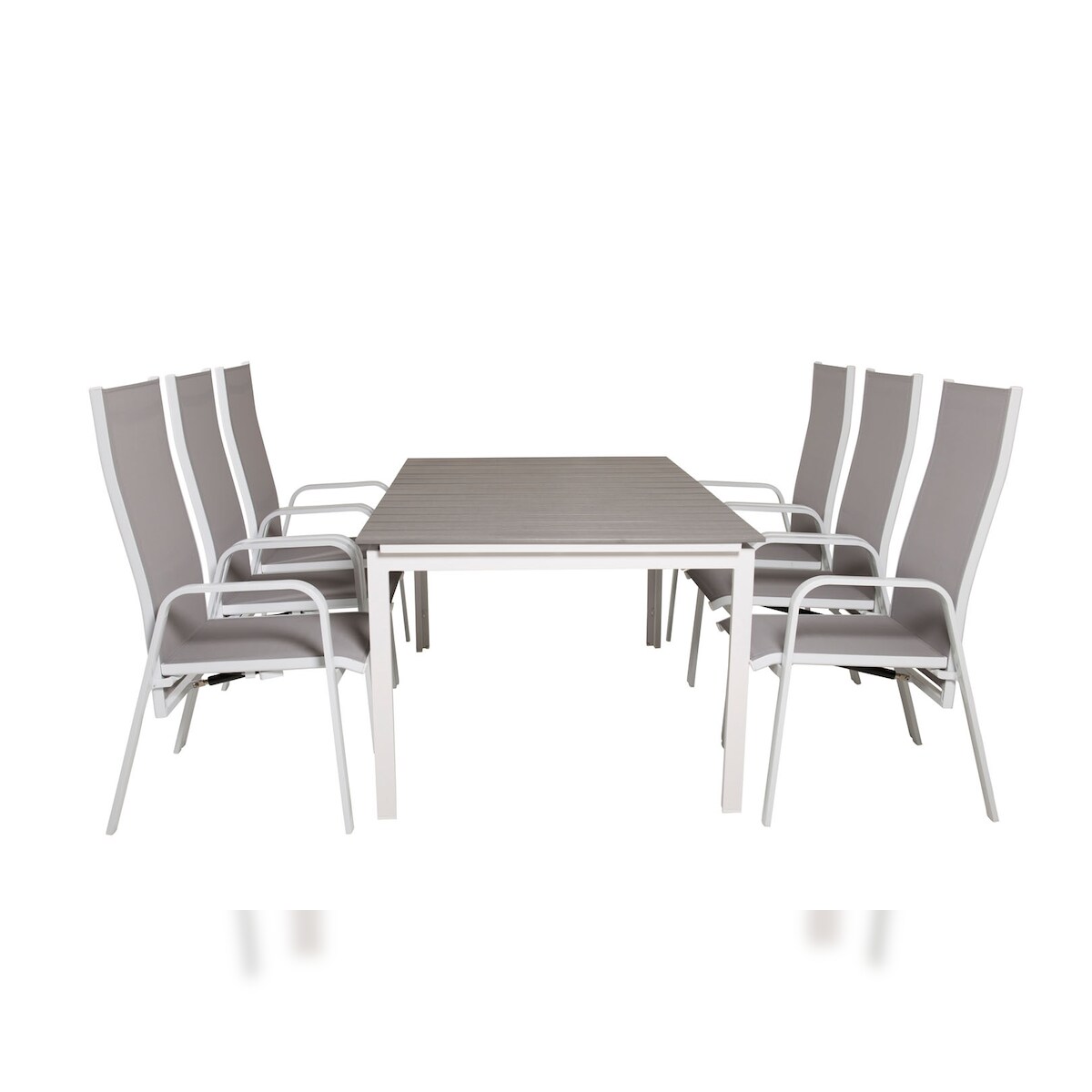 Levels Gartenset Tisch 100x160/240cm und 6 Stühle Copacabana weiß, grau.