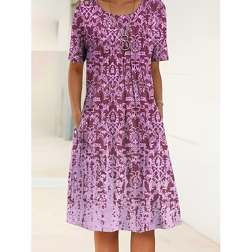 Per donna Abito Midi Abito a Tubino Vacanza Casual Quotidiano Vestibilità regolare Grafico Geometrico Manica Corta Girocollo Blu Viola Verde Estate Primavera
