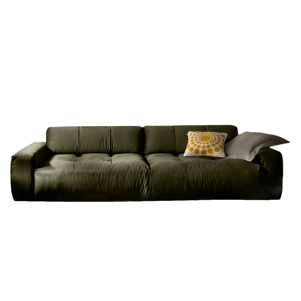KAWOLA Big Sofa PALACE 3-Sitzer mit Sitztiefenverstellung Velvet oliv