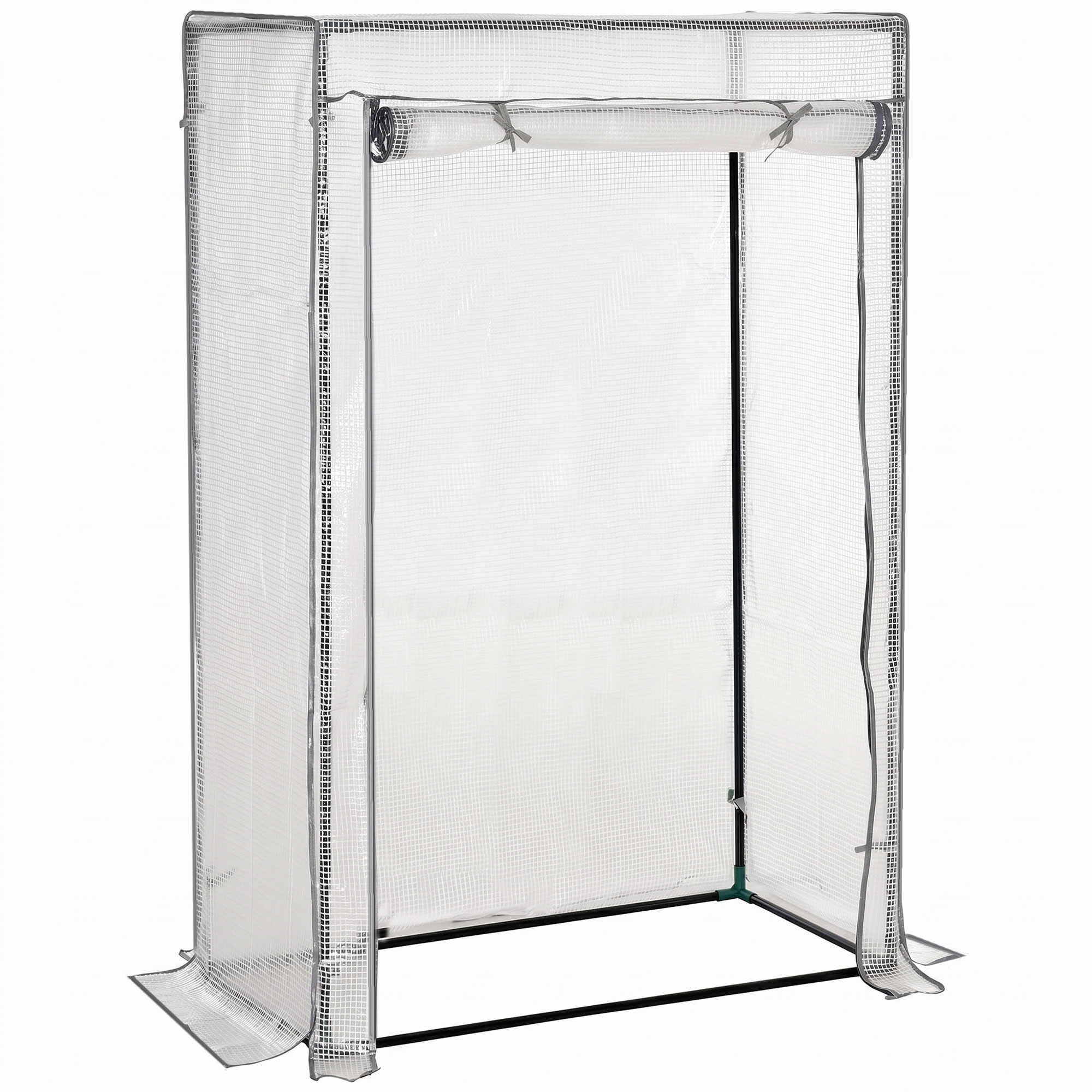 Outsunny Greenhouse Oasis: Steel-Framed PE Shelter with Roll-Up Door, White | Aosom UK