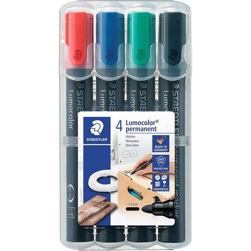 STAEDTLER Permanentmarker Lumocolor permanent Rundspitze Blau / Schwarz / Rot / Grün 4 Stück