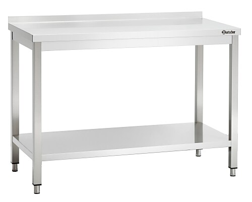 Bartscher Edelstahl-Arbeitstisch mit Rückenlehne + Bodenregal | 600mm tief | 850mm hoch