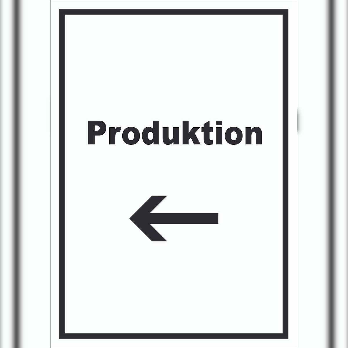 HB-Druck Produktion Schild mit Text und Richtungspfeil links Herstellung hochkant A6 Rückseite selbstklebend