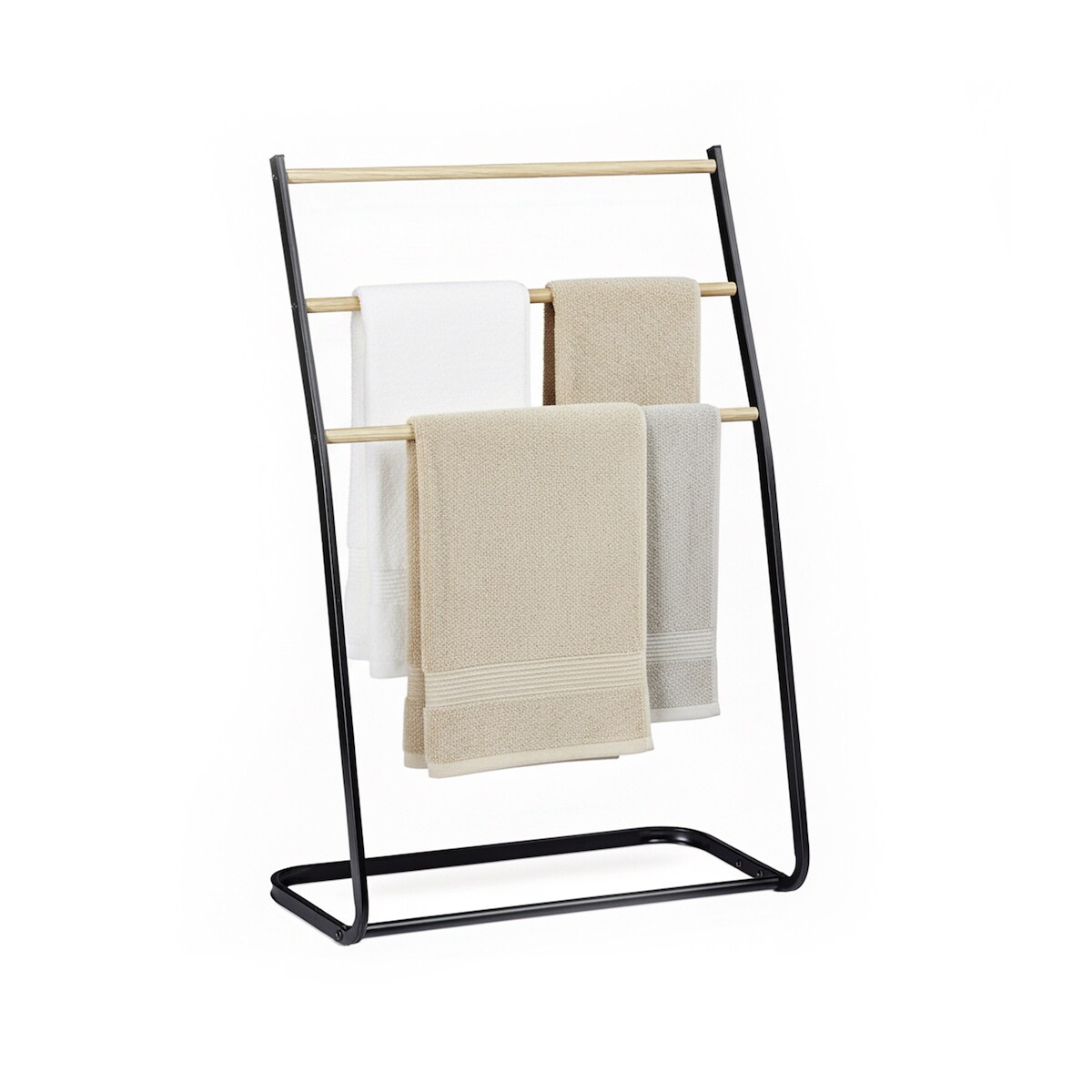 Relaxdays Handtuchhalter stehend, 3 Sprossen, für Handtücher & Kleidung, HxBxT: 86 x 58 x 30 cm, Eisen, schwarz