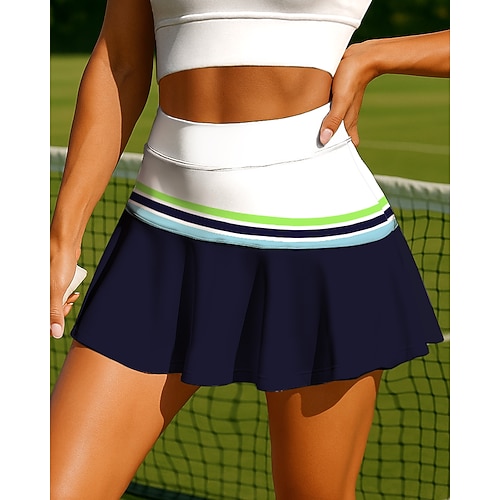 Per donna Unisex Geometrico A righe Gonne da tennis Patchwork Tasca 2 in 1 UPF50 Resistente ai Raggi UV Multistrato Pallavolo Tennis Badminton Pantaloncini Gonna Rosso Blu marino scuro Blu Reale