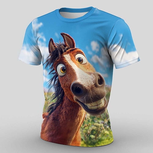 Per uomo Animale Cavallo Divertente Maglietta Manica Corta maglietta Stampa 3D Girocollo Camicia Esagerato Designer Feste Ferie Blu 2# Blu 1# Estate Primavera Abbigliamento S M L XL XXL XXXL